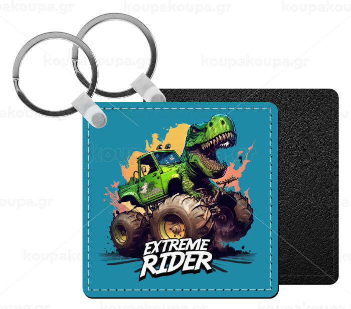Extreme rider Dyno, Μπρελόκ Δερματίνη, τετράγωνο ΜΑΥΡΟ (5x5cm)
