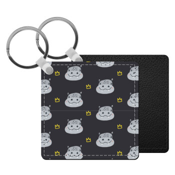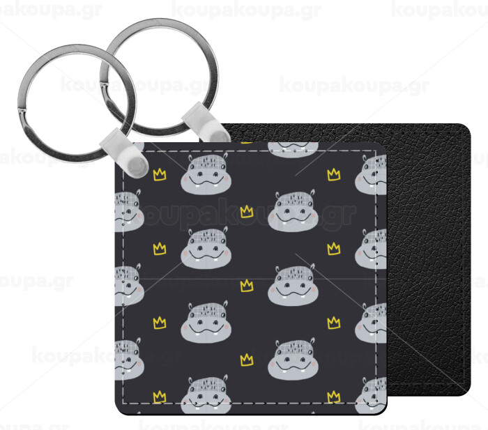 Hippo, Μπρελόκ Δερματίνη, τετράγωνο ΜΑΥΡΟ (5x5cm)