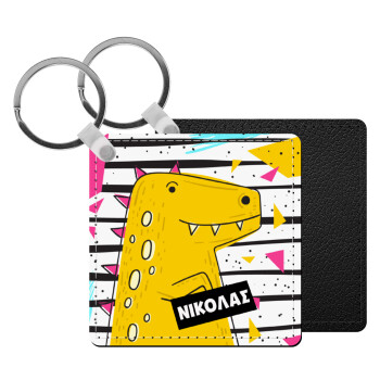 t-rex , Μπρελόκ Δερματίνη, τετράγωνο ΜΑΥΡΟ (5x5cm)
