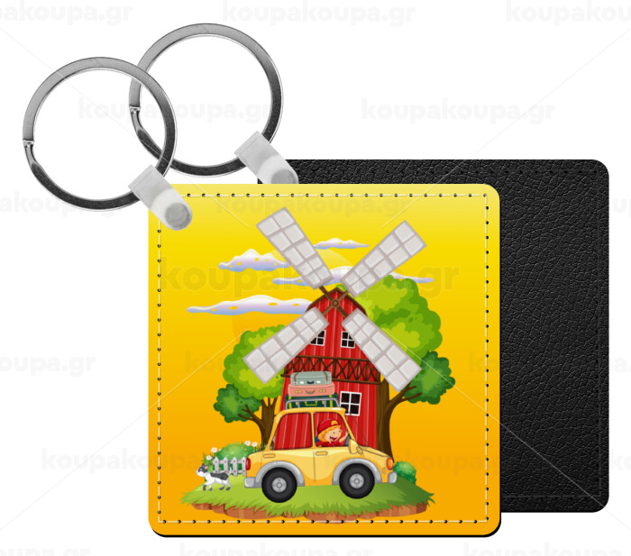 Toy car, Μπρελόκ Δερματίνη, τετράγωνο ΜΑΥΡΟ (5x5cm)