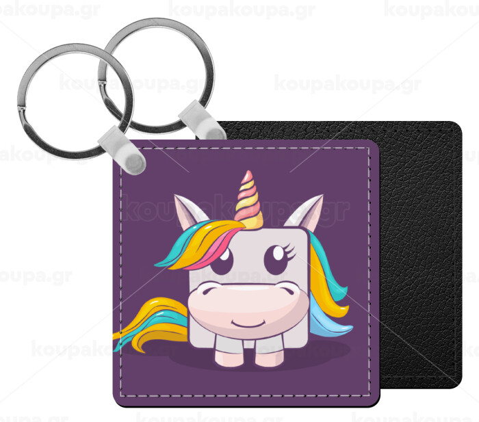 Unicorns cube, Μπρελόκ Δερματίνη, τετράγωνο ΜΑΥΡΟ (5x5cm)