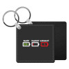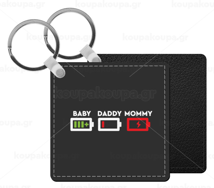 BABY, MOMMY, DADDY Low battery, Μπρελόκ Δερματίνη, τετράγωνο ΜΑΥΡΟ (5x5cm)
