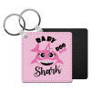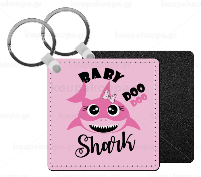 Baby Shark (girl), Μπρελόκ Δερματίνη, τετράγωνο ΜΑΥΡΟ (5x5cm)