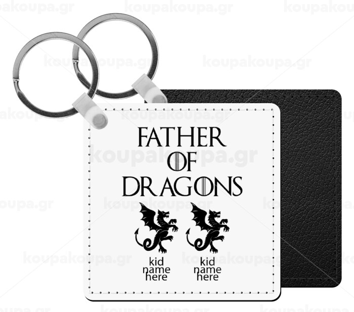 GOT, Father of Dragons (με ονόματα παιδικά), Μπρελόκ Δερματίνη, τετράγωνο ΜΑΥΡΟ (5x5cm)