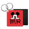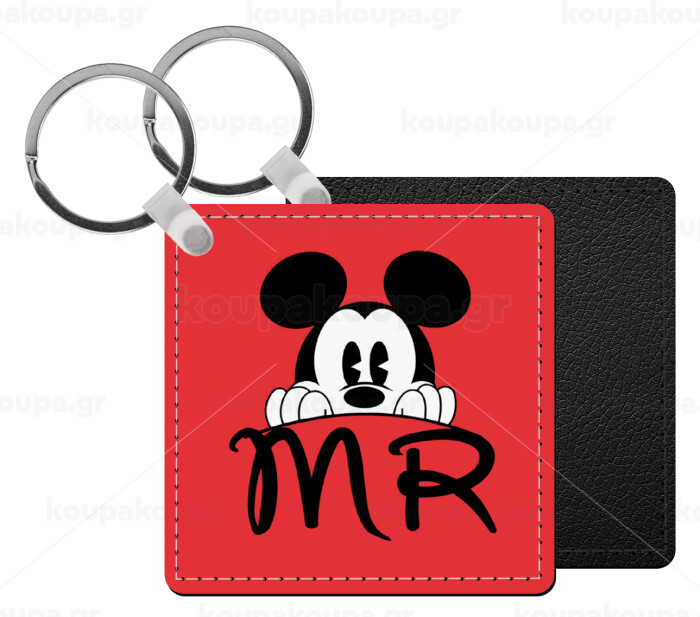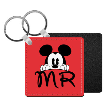 Mikey Mr, Μπρελόκ Δερματίνη, τετράγωνο ΜΑΥΡΟ (5x5cm)