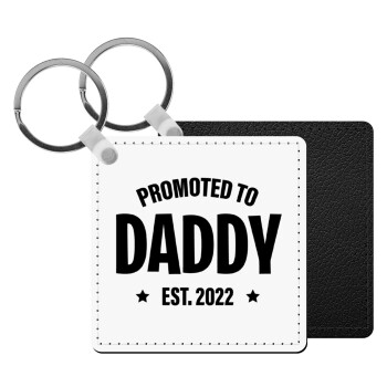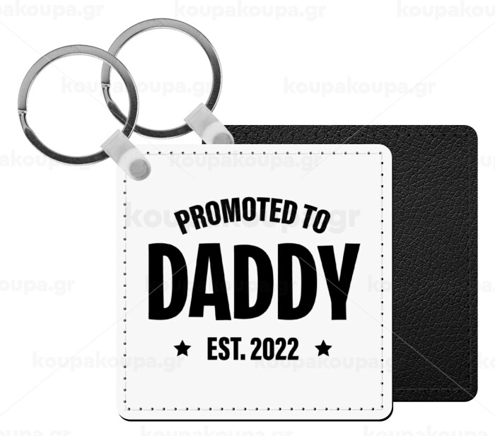 Promoted to Daddy, Μπρελόκ Δερματίνη, τετράγωνο ΜΑΥΡΟ (5x5cm)