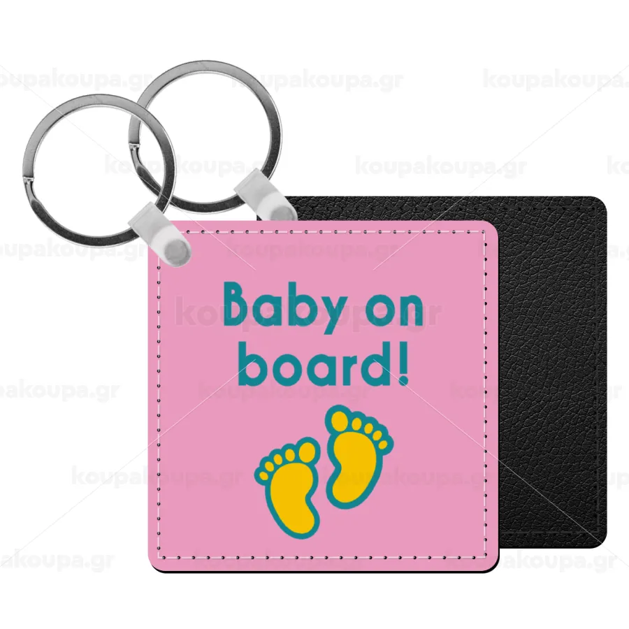 Baby on Board πατουσα Αγόρι, Μπρελόκ Δερματίνη, τετράγωνο ΜΑΥΡΟ (5x5cm)