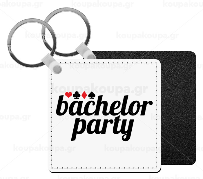 Bachelor party, Μπρελόκ Δερματίνη, τετράγωνο ΜΑΥΡΟ (5x5cm)