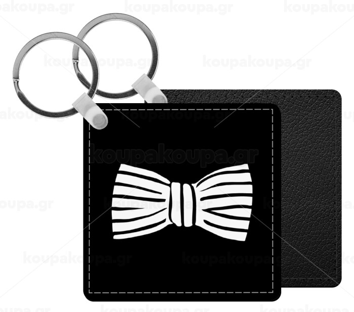 Bow tie, Μπρελόκ Δερματίνη, τετράγωνο ΜΑΥΡΟ (5x5cm)