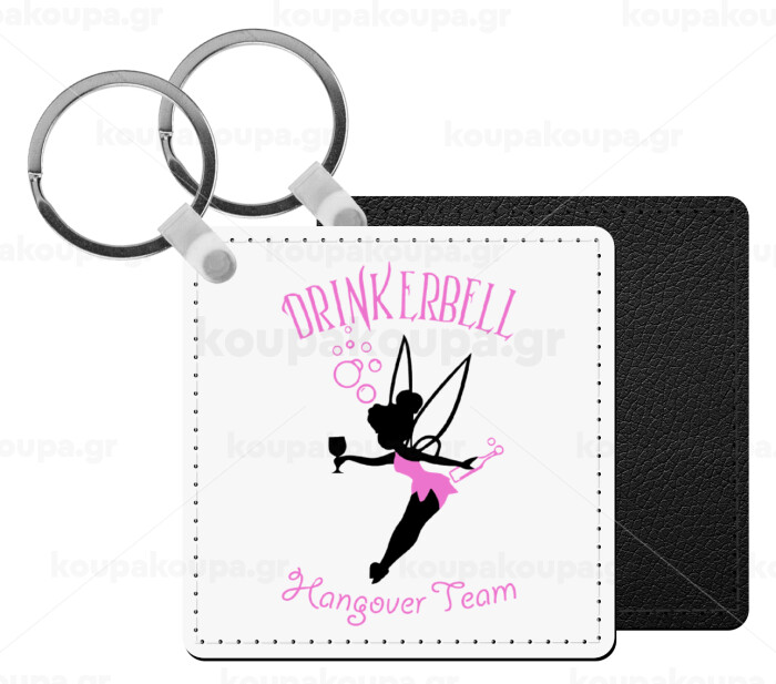 Drinkerbell bachellor, Μπρελόκ Δερματίνη, τετράγωνο ΜΑΥΡΟ (5x5cm)