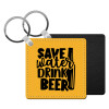 Save Water, Drink BEER, Μπρελόκ Ξύλινο τετράγωνο MDF