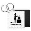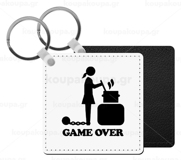 Woman Game Over, Μπρελόκ Δερματίνη, τετράγωνο ΜΑΥΡΟ (5x5cm)