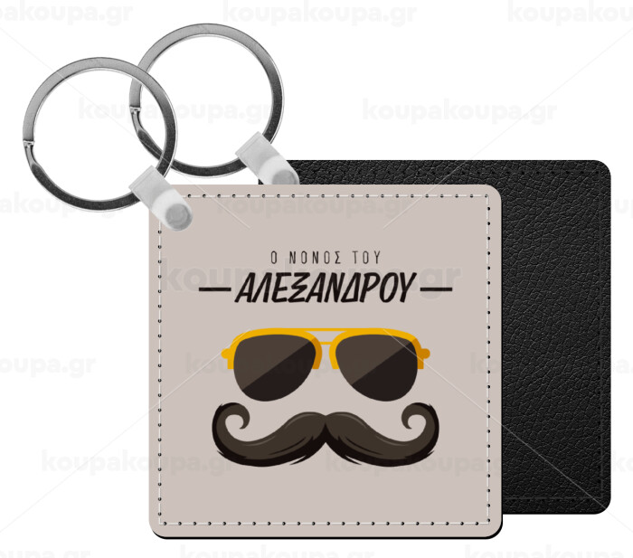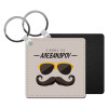 Ο νονός μου, μουστάκι με γυαλιά, Μπρελόκ Δερματίνη, τετράγωνο ΜΑΥΡΟ (5x5cm)