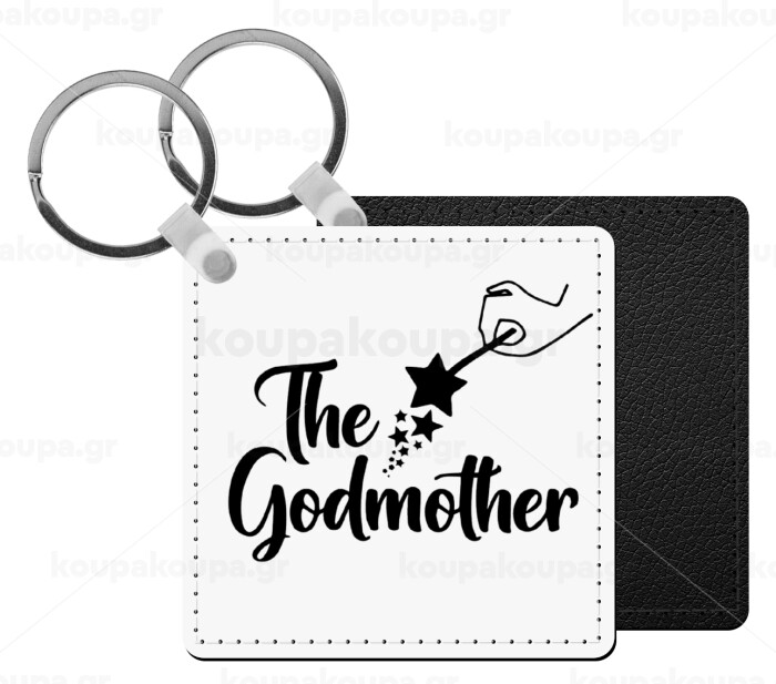 Fairy God Mother, Μπρελόκ Δερματίνη, τετράγωνο ΜΑΥΡΟ (5x5cm)