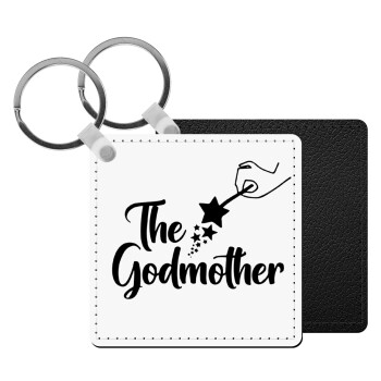 Fairy GodMother, Μπρελόκ Δερματίνη, τετράγωνο ΜΑΥΡΟ (5x5cm)
