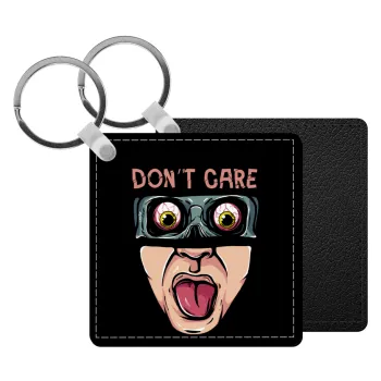 Don't Care, Μπρελόκ Δερματίνη, τετράγωνο ΜΑΥΡΟ (5x5cm)