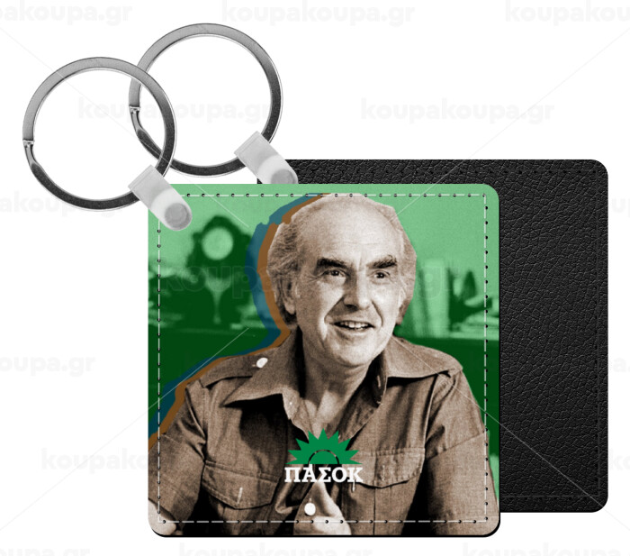 ΠΑΣΟΚ Ανδρέας, Μπρελόκ Δερματίνη, τετράγωνο ΜΑΥΡΟ (5x5cm)