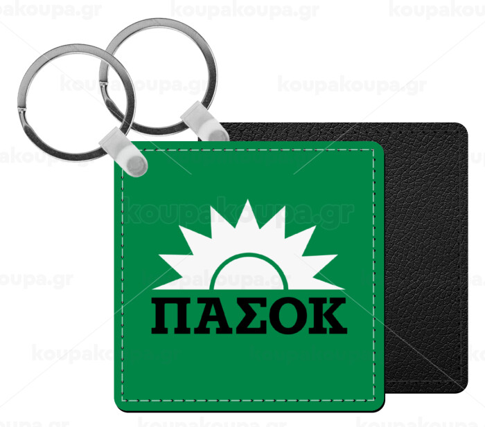 PASOK green, Μπρελόκ Δερματίνη, τετράγωνο ΜΑΥΡΟ (5x5cm)
