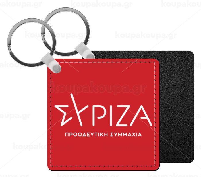 Σύριζα το νέο, Μπρελόκ Δερματίνη, τετράγωνο ΜΑΥΡΟ (5x5cm)