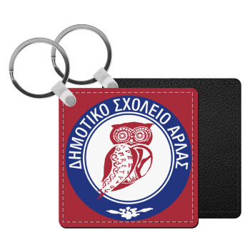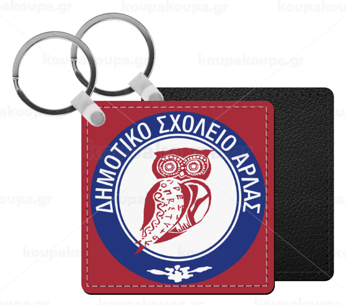 Έμβλημα Σχολικό, Μπρελόκ Δερματίνη, τετράγωνο ΜΑΥΡΟ (5x5cm)
