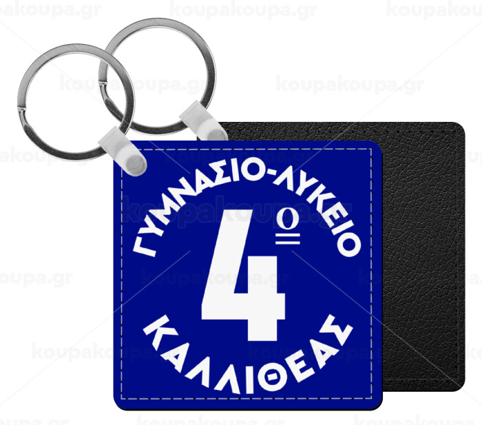 Έμβλημα Σχολικό μπλε κλασικό, Μπρελόκ Δερματίνη, τετράγωνο ΜΑΥΡΟ (5x5cm)
