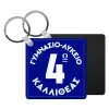 Έμβλημα Σχολικό μπλε κλασικό, Μπρελόκ Δερματίνη, τετράγωνο ΜΑΥΡΟ (5x5cm)