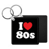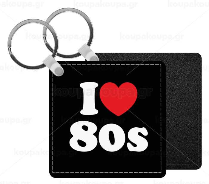 I Love 80s, Μπρελόκ Δερματίνη, τετράγωνο ΜΑΥΡΟ (5x5cm)