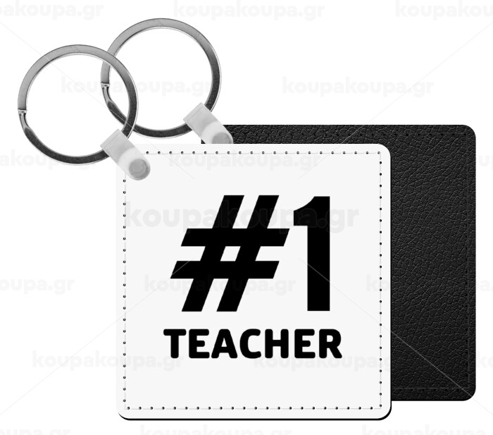 #1 teacher, Μπρελόκ Δερματίνη, τετράγωνο ΜΑΥΡΟ (5x5cm)