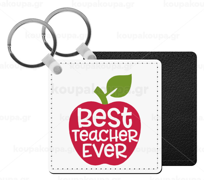 Teacher, Μπρελόκ Δερματίνη, τετράγωνο ΜΑΥΡΟ (5x5cm)