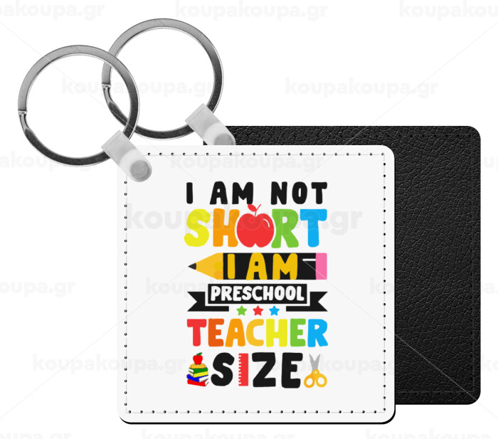 I Am Not Short I Am Preschool Teacher Size, Μπρελόκ Δερματίνη, τετράγωνο ΜΑΥΡΟ (5x5cm)