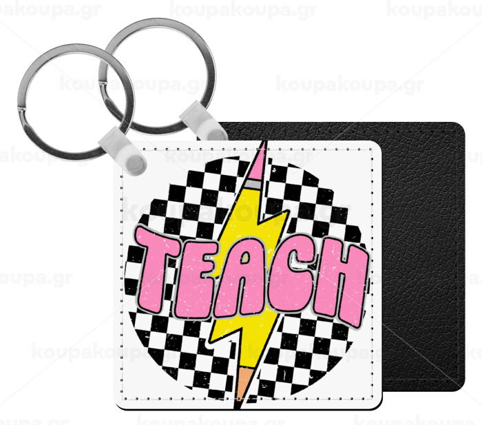 Teacher, Μπρελόκ Δερματίνη, τετράγωνο ΜΑΥΡΟ (5x5cm)