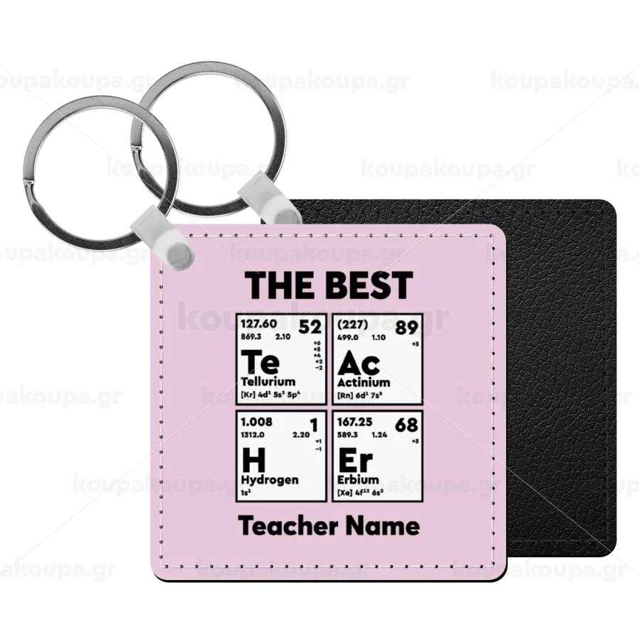THE BEST Teacher chemical symbols, Μπρελόκ Δερματίνη, τετράγωνο ΜΑΥΡΟ (5x5cm)