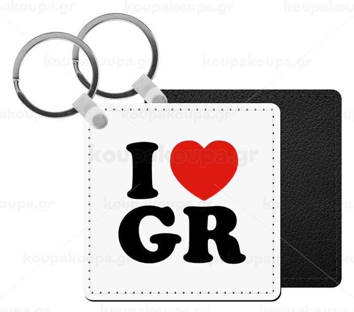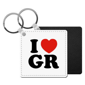 I Love GR, Μπρελόκ Δερματίνη, τετράγωνο ΜΑΥΡΟ (5x5cm)