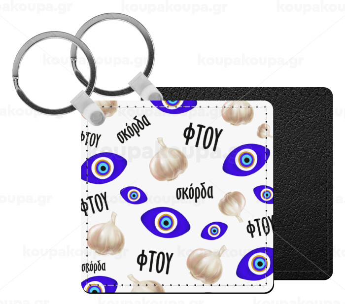 Φτου, φτου, σκόρδα!!!, Μπρελόκ Δερματίνη, τετράγωνο ΜΑΥΡΟ (5x5cm)