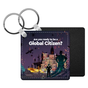 A global Citizen, Μπρελόκ Δερματίνη, τετράγωνο ΜΑΥΡΟ (5x5cm)