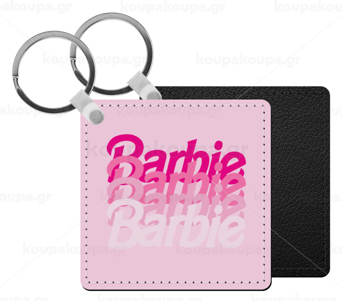 Barbie repeat, Μπρελόκ Δερματίνη, τετράγωνο ΜΑΥΡΟ (5x5cm)