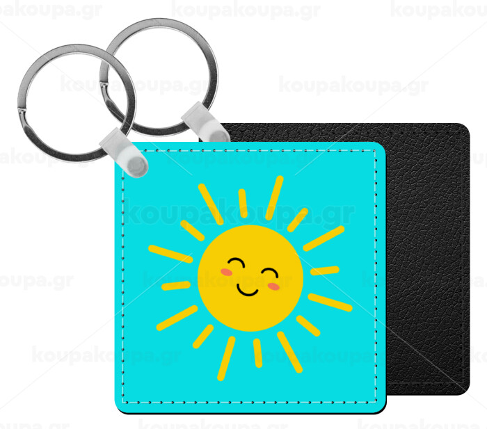 Happy sun, Μπρελόκ Δερματίνη, τετράγωνο ΜΑΥΡΟ (5x5cm)