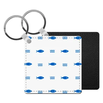 Fishing, Μπρελόκ Δερματίνη, τετράγωνο ΜΑΥΡΟ (5x5cm)