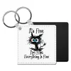 Cat, It's Fine I'm Fine Everything Is Fine, Μπρελόκ Δερματίνη, τετράγωνο ΜΑΥΡΟ (5x5cm)