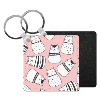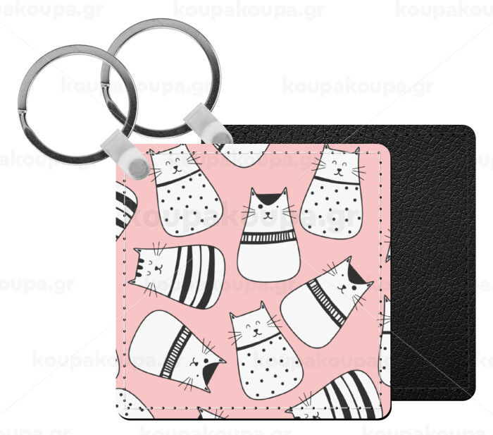 Cute cats, Μπρελόκ Δερματίνη, τετράγωνο ΜΑΥΡΟ (5x5cm)