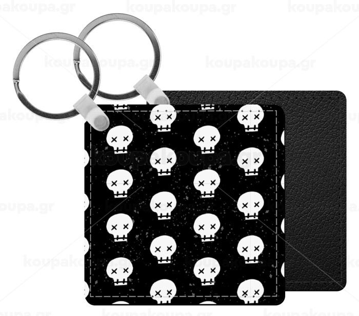 Σκελετοί lines, Μπρελόκ Δερματίνη, τετράγωνο ΜΑΥΡΟ (5x5cm)