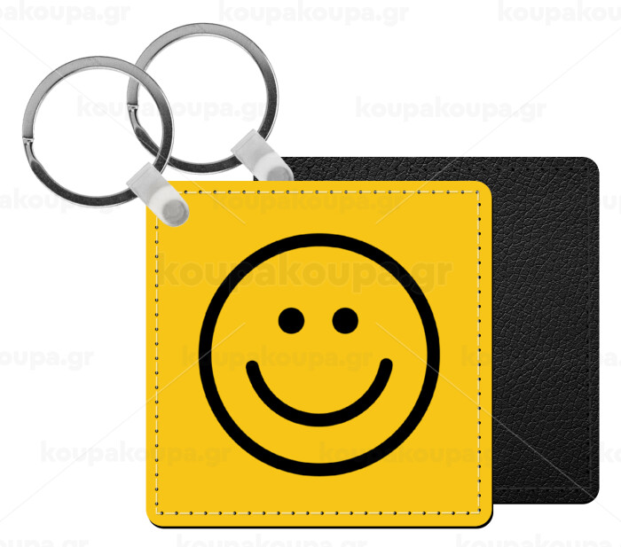 Χαμόγελο , Μπρελόκ Δερματίνη, τετράγωνο ΜΑΥΡΟ (5x5cm)