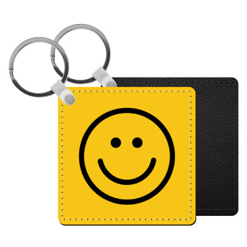 Smile avatar distrorted, Μπρελόκ Δερματίνη, τετράγωνο ΜΑΥΡΟ (5x5cm)