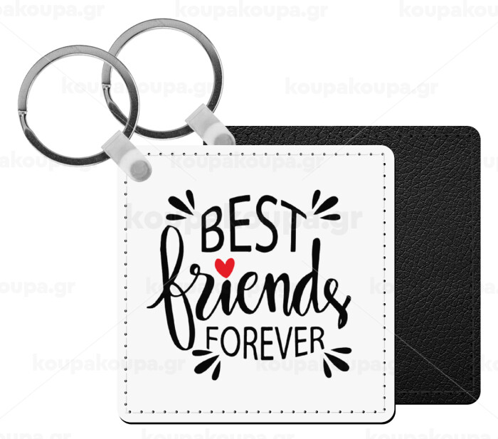 Best Friends forever, Μπρελόκ Δερματίνη, τετράγωνο ΜΑΥΡΟ (5x5cm)