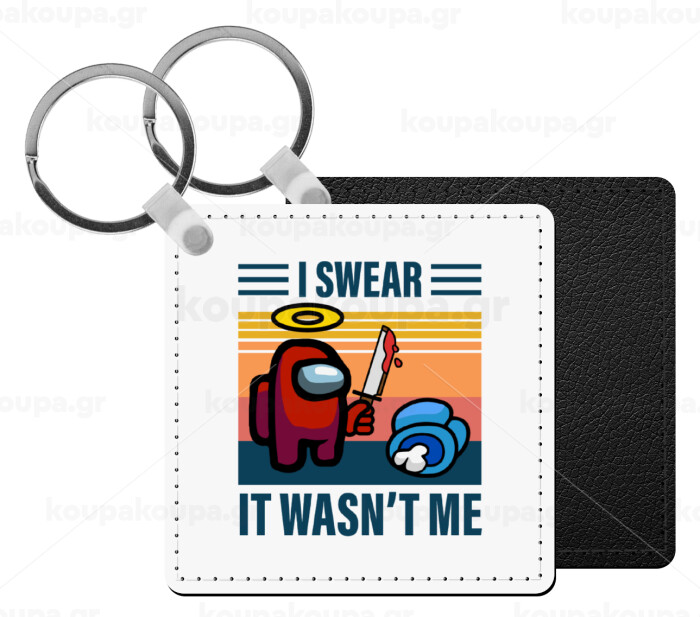 Among us, I swear it wasn't me, Μπρελόκ Δερματίνη, τετράγωνο ΜΑΥΡΟ (5x5cm)