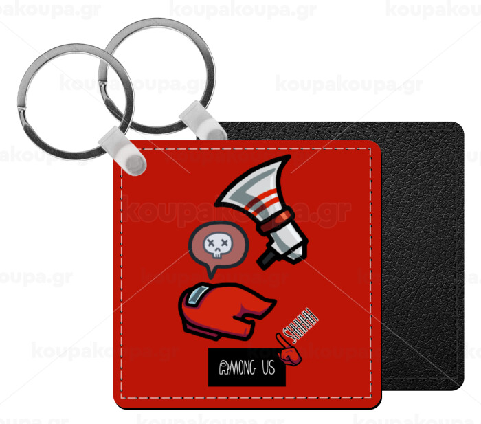 Among US Shhhh!!!, Μπρελόκ Δερματίνη, τετράγωνο ΜΑΥΡΟ (5x5cm)