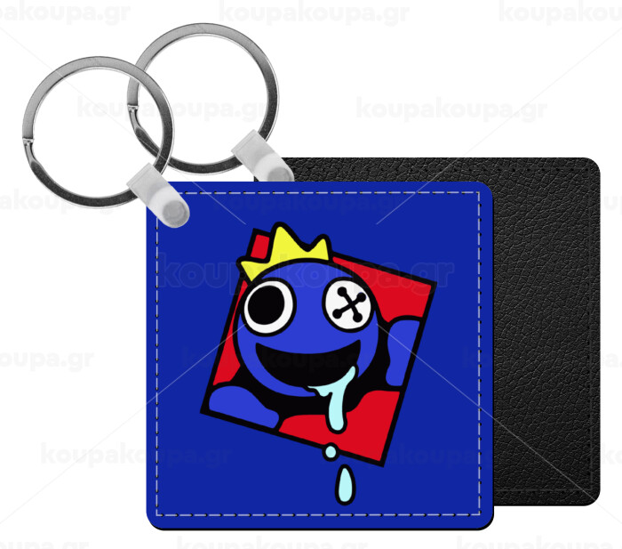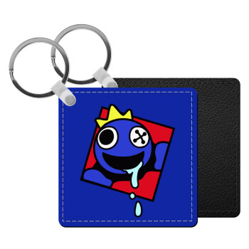 Blue, Rainbow friends, Μπρελόκ Δερματίνη, τετράγωνο ΜΑΥΡΟ (5x5cm)