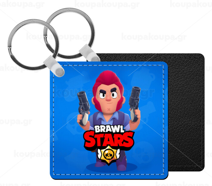 Brawl Stars Colt, Μπρελόκ Δερματίνη, τετράγωνο ΜΑΥΡΟ (5x5cm)