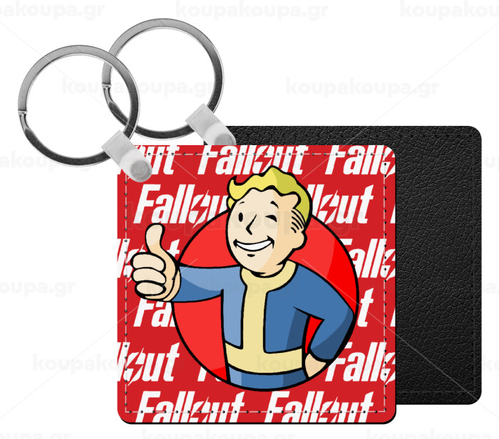 Fallout Vault Boy, Μπρελόκ Δερματίνη, τετράγωνο ΜΑΥΡΟ (5x5cm)