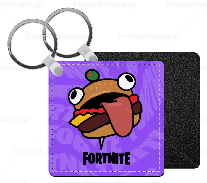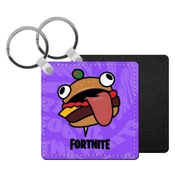 Fortnite Durr Burger, Μπρελόκ Δερματίνη, τετράγωνο ΜΑΥΡΟ (5x5cm)